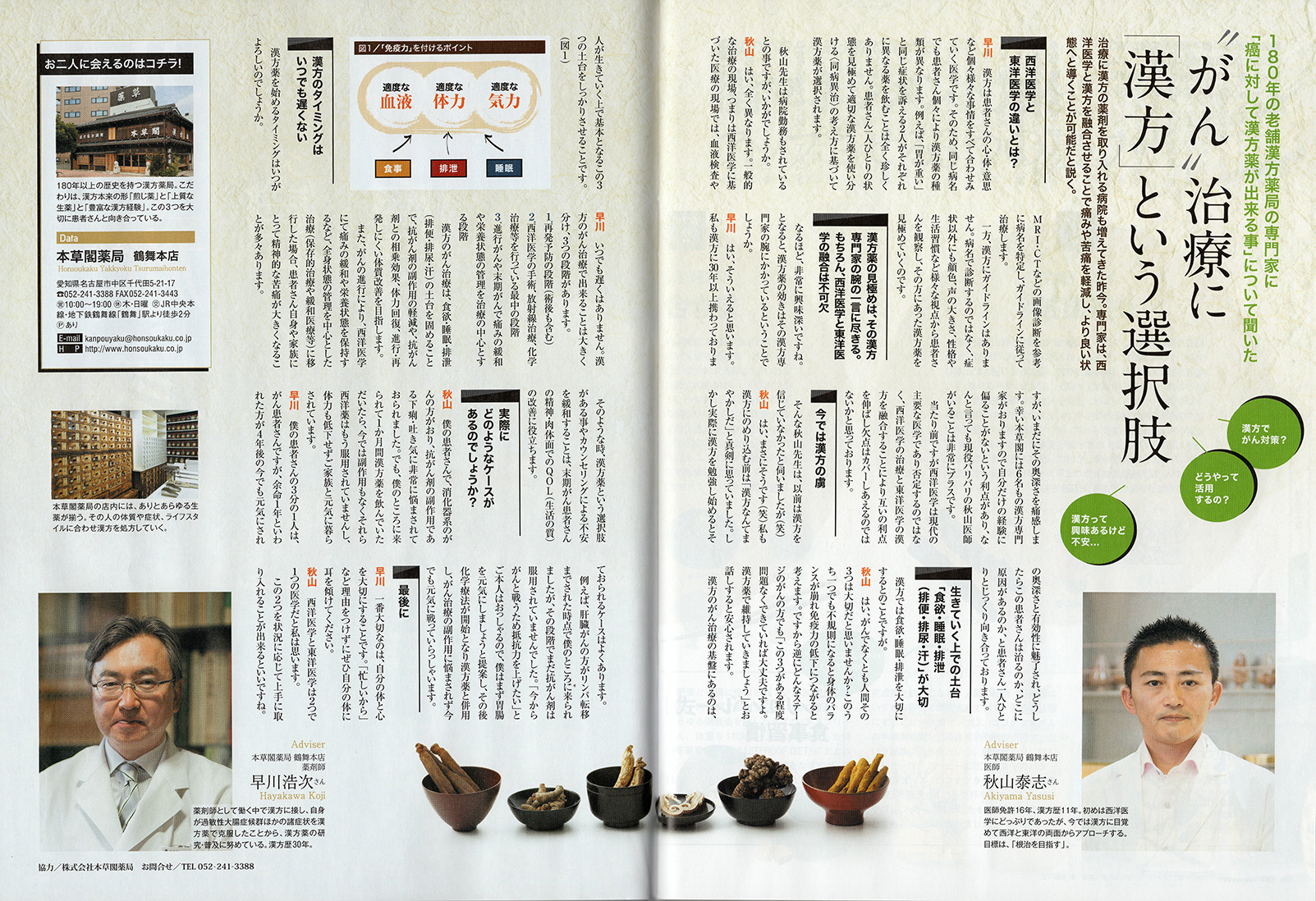 日経おとなのOFF2月号に本草閣が掲載されました。2017年01月16日 取材 雑誌「日経おとなのOFF2月号」に本草閣が掲載されました。 「がん治療に漢方という選択肢」というテーマで 漢方一筋の早川先生と、現役ドクターで漢方に魅せられた秋山先生の 癌に対する漢方治療の対談となっています。